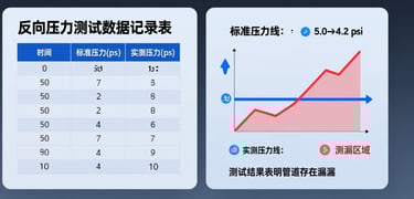 原理判斷:如果在壓力維持期間,儀器顯示的壓力值出現持續且顯著的下降,則證明該排水管系統存在密封缺陷,導致壓力無法保持,從而確認有洩漏點。壓力下降的速度與洩漏點的大小和數量成正比。