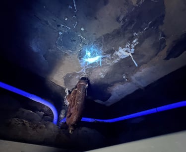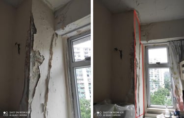 透過直接觀察滲水位置的視覺特徵(水漬形態、顏色深度、表面變化),建立初步滲水路徑判斷基礎