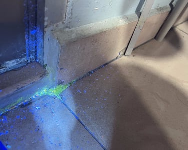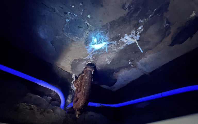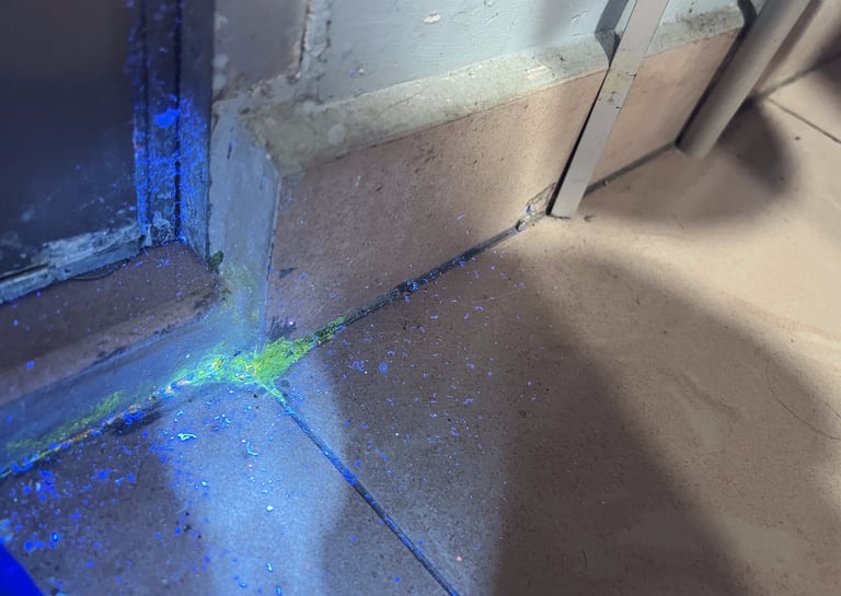 住宅滲漏:馬桶泄漏導致牆角潮濕,尿素檢測呈陽性,pH值偏鹼(氨類分解),確認排污管問題
