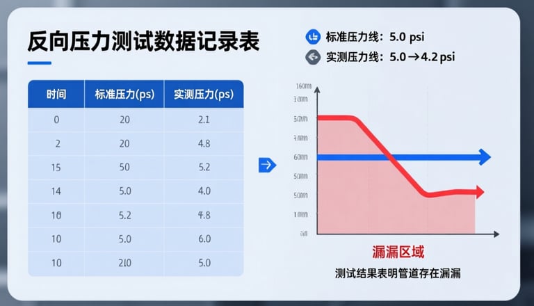該方法的核心是流體力學中的壓力守恆原理。在一個完全密封的排水管系統中,其內部壓力在注入空氣或水並封閉後應保持穩定。測試時,使用專用設備(如氣壓泵或水壓泵)向特定的排水口(如地台去水口)施加一個標準化的反向壓力(通常為每平方英寸1-5磅,或注水至一定高度),並維持一段時間(通常為5-10分鐘)。