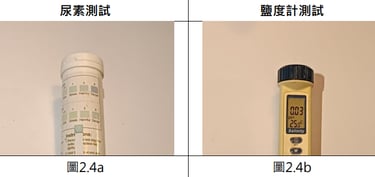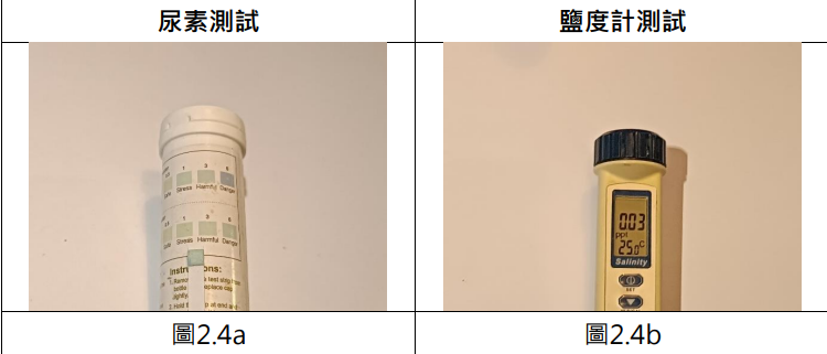 尿素陽性反應+鹽分0.03p.p.t.,確認為污水滲漏