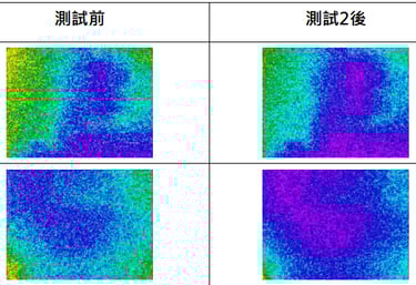 After Test 2 (cylinder waterproof layer): The water-holding area significantly expanded, and the low-temperature zone (blue/purple) spread