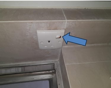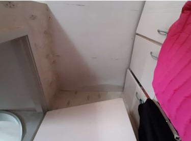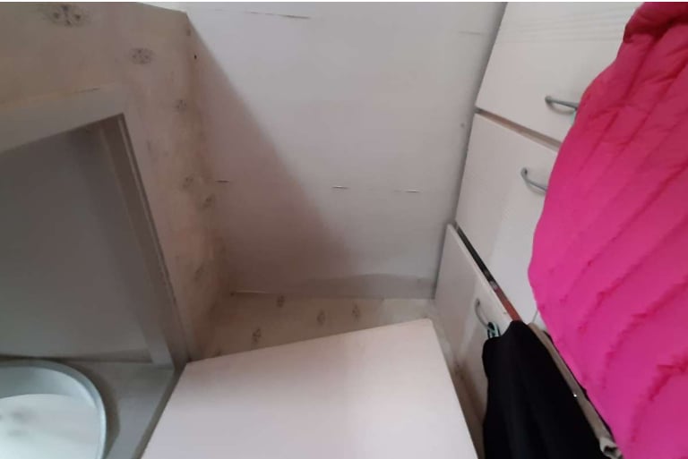 Note: There are obvious water stains and damp traces on the ceiling at the affected location