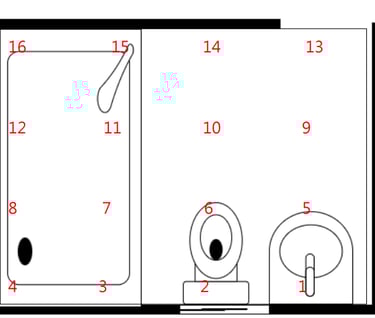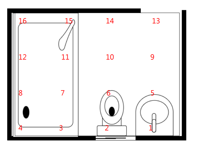 The humidity distribution map clearly indicates that the source is the floor of the upper toilet.