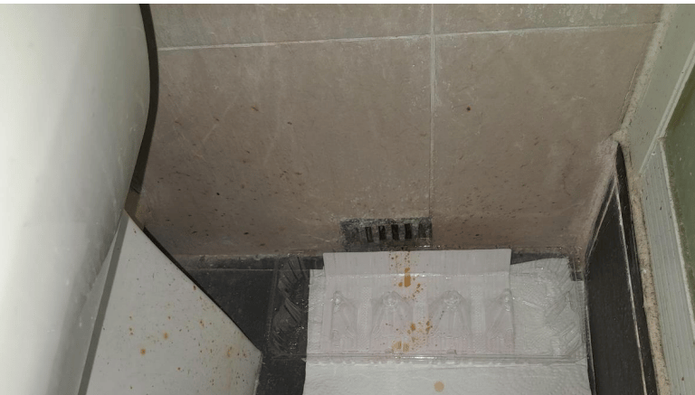 1.Responsibility attribution: The waterproof layer of the guest toilet on the upper floor failed, causing water to seep through the floor and into the lower floor.