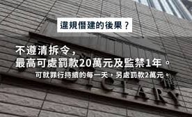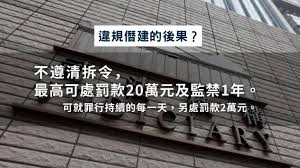屋宇署發出清拆令或檢控通知,逾期未辦最高可罰款港幣50萬元及監禁1年